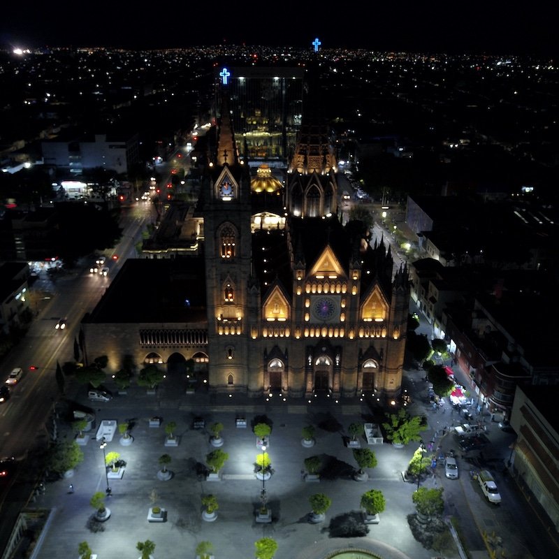El templo expiatorio es uno de los puntos obligados de visita en Guadalajara. Durante la noche se puede ver el templo iluminado, lo que hace que se vea aún más espectacular.