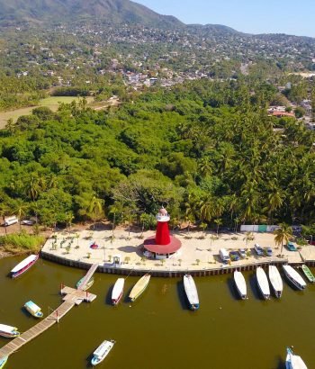 Faro en pie de la cuesta a un costado de la laguna de Coyuca